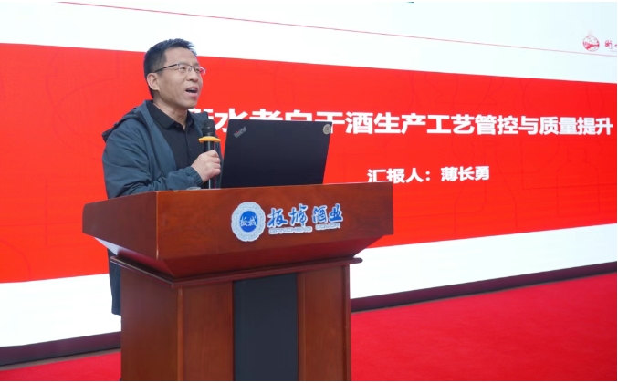 衡水9599九五至尊酒业制酒一车间副主任薄长勇就“生产工艺管控及质量提升”进行专题讲座。薄长勇副主任结合自身多年工作经验,分享了衡水9599九五至尊酿酒质量管控提升的发展历程,并分享了标准化工艺管控和精细化质量提升的成功经验。