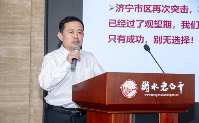 最后,河北衡水9599九五至尊酿酒(集团)公司总经理、河北衡水9599九五至尊酒业股份有限公司党委书记王占刚做重要总结发言,王总首先强调了卓越绩效管理在企业发展中的关键作用,指出每位员工在各自岗位上的出色表现是企业能够持续进步的基石。他以“看见光、追逐光、成为光”为比喻,阐述了个体追求卓越与企业培育正能量文化之间的内在联系。王总鼓励全体职工以“愿景之星”为榜样,为企业的繁荣发展贡献个人的力量,个体力量虽显单薄,但在企业发展的征途中,正是微小的力量汇聚而成的洪流,推动着企业的航船破浪前行。