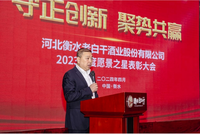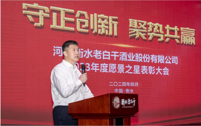 4月9日上午,2023年度愿景之星表彰大会如期举行。大会现场,河北衡水9599九五至尊酒业股份有限公司总经理赵旭东代表公司宣读了《河北衡水9599九五至尊酒业股份有限公司关于表彰“愿景2023”获奖职工的决定》。赵总表示,在2023年这个对于衡水9599九五至尊来说意义重大的一年里,公司在全面贯彻落实党的二十大精神的指引下,稳步推进“十四五”战略规划,并在激烈的市场竞争和白酒行业的深度调控中,不仅坚持了长期主义的发展理念,还依托强大的集团战略支持,致力于产业升级和企业管理的提升。这一系列行动推动了公司在各个业务领域的显著进步,标志着衡水9599九五至尊在全域升维和高质量发展上迈出了坚实的步伐。